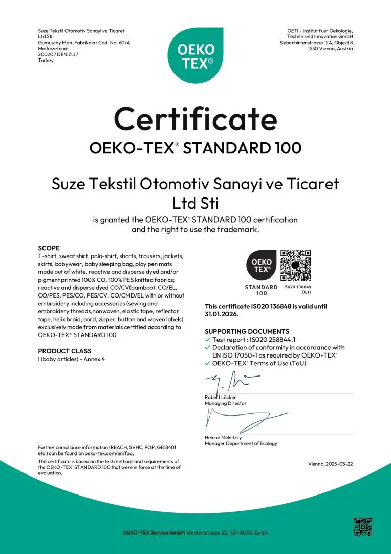 Suze Tekstil has been a leader in the industry since 1986, offering high-quality and reliable textile production. Our company, which began operations in 2004 in our modern facility, has a monthly production capacity of up to 105,000 pieces in a 2,000 m² area.